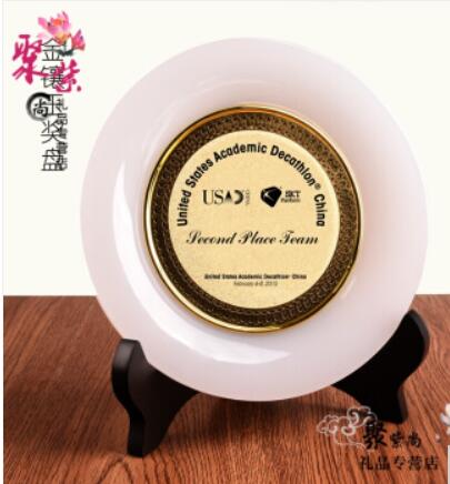 • 商品名称:金镶玉奖盘定制奖杯奖牌定做退休纪念品奖品