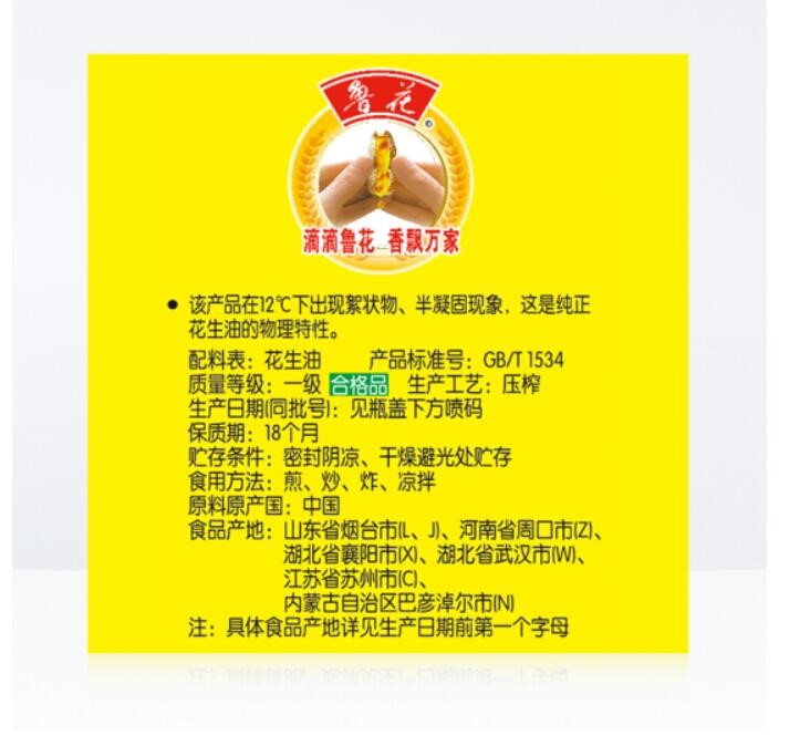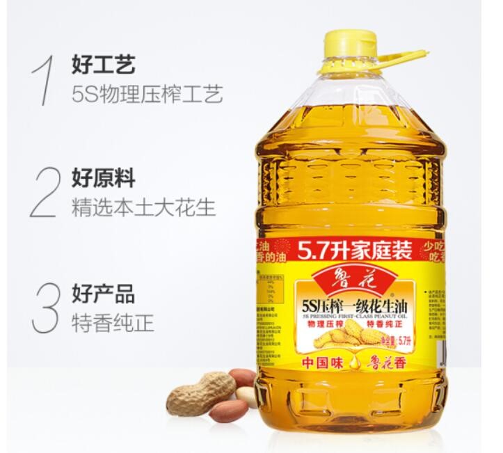 • 商品名称:鲁花 食用油 5S 物理压榨 压榨一级 花生油5.7L(新老包装随机发放)