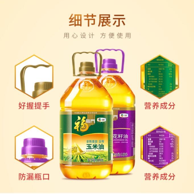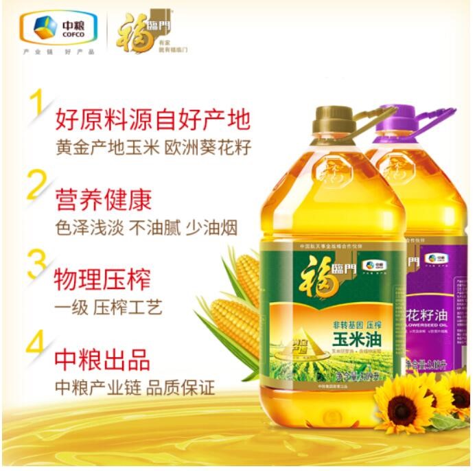• 商品名称:福临门营养组合套装 全程可追溯 葵花籽油+黄金产地玉米油 3.09L*2 中粮出品