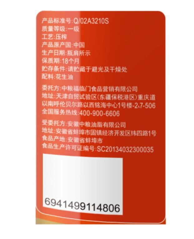 • 商品名称:福临门 食用油 浓香压榨一级 花生油4L 中粮出品