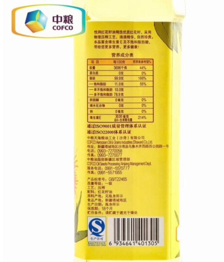 • 商品名称:中粮悦活红花籽油礼盒物理压榨食用油亚油酸胆固醇血脂 正品 单瓶1000m