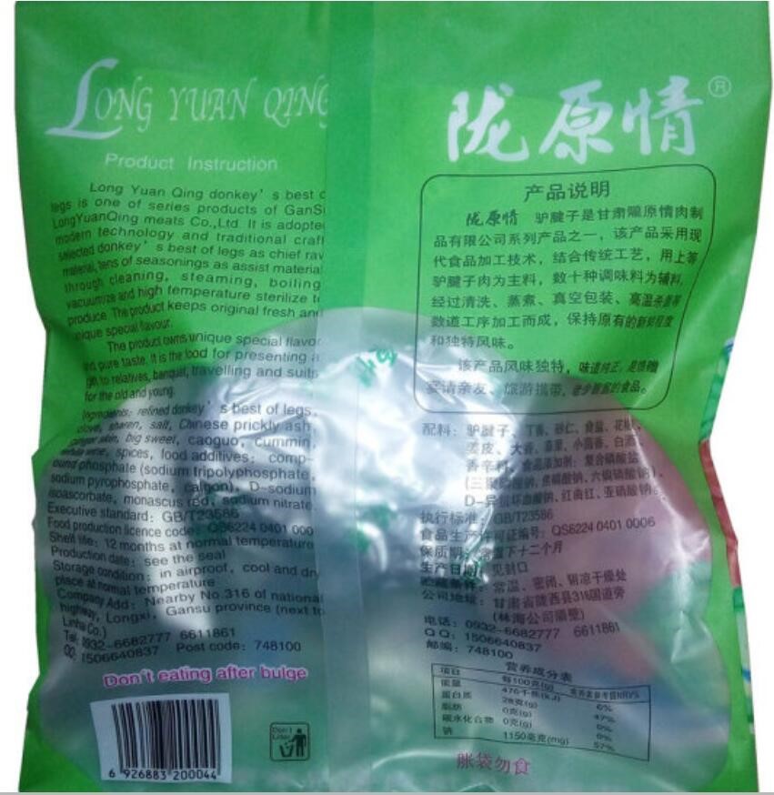 • 商品名称: 甘肃特产陇原情五香驴肉 真空熟食200g 酱驴肉酒店冷盘
