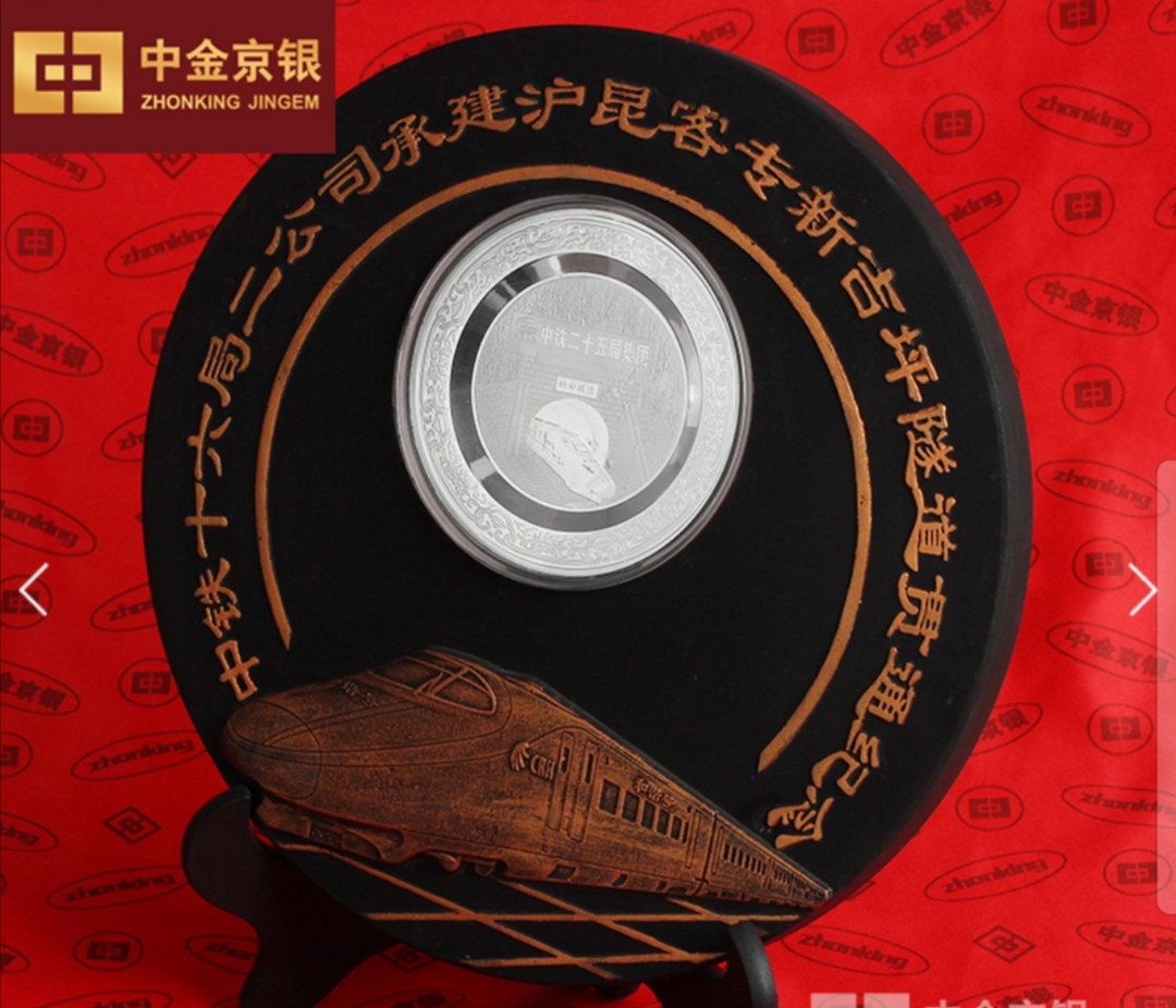 中铁16局二公司定制,碳雕镶嵌,银币摆件