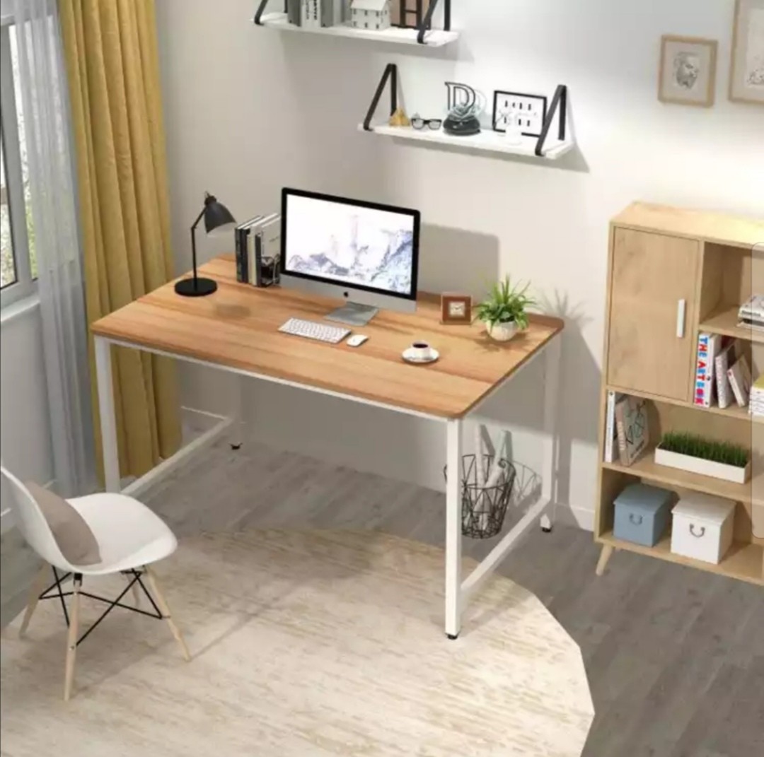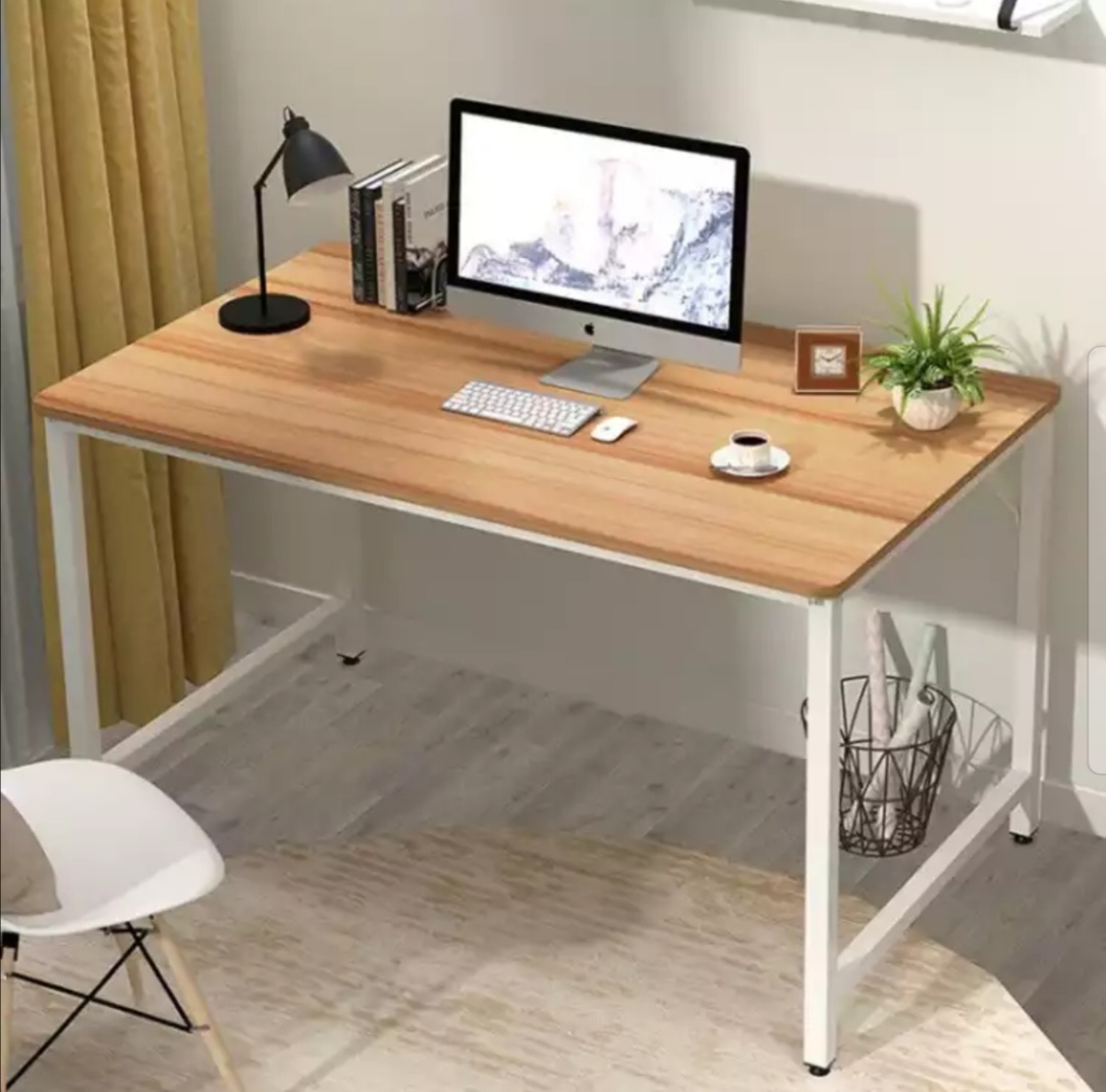 木以成居 电脑桌书桌加宽台式家用现代简约简易办公桌写字桌子 苹果木色白色桌腿 LY-1049