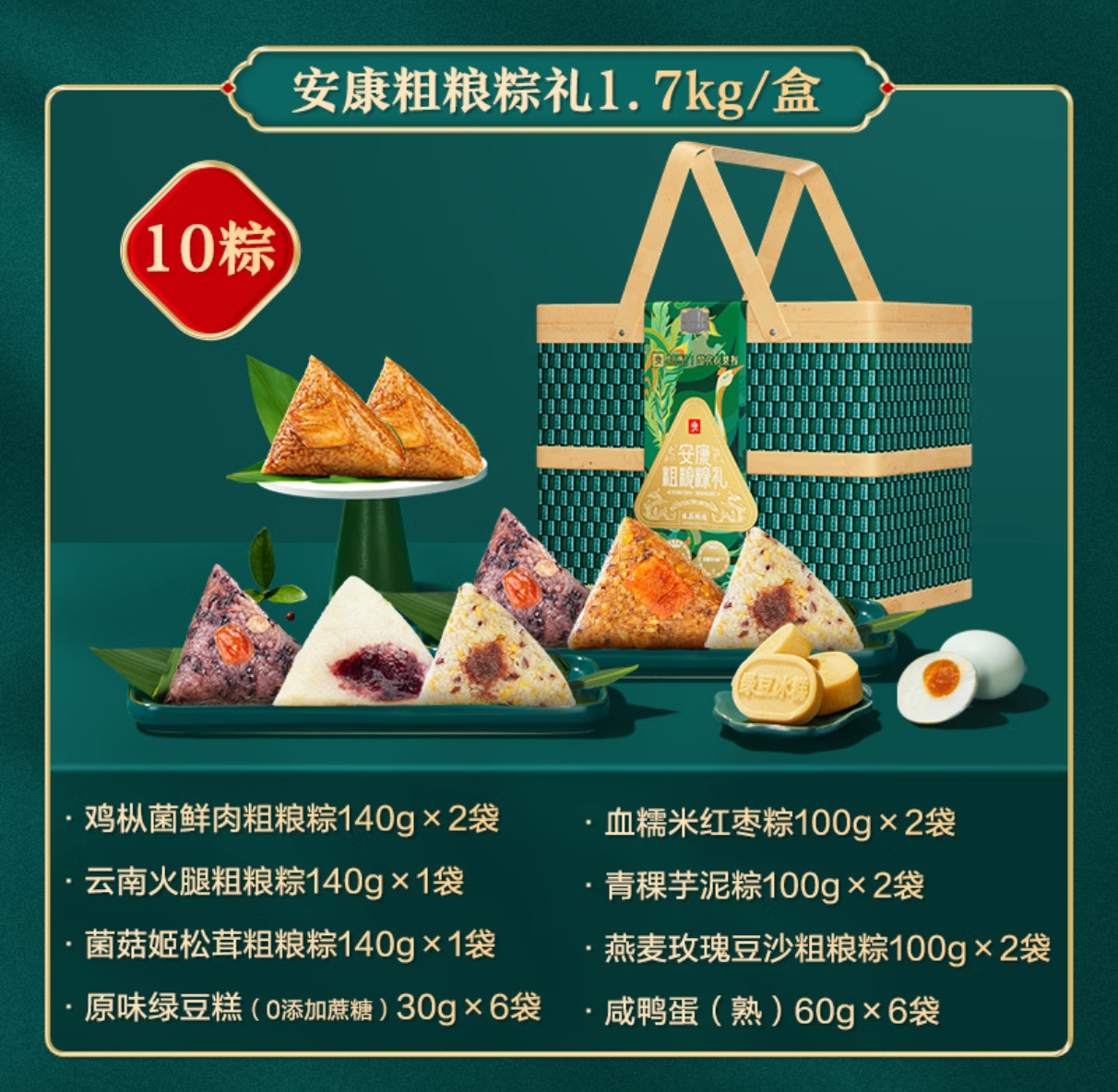 鸡枞菌鲜肉粗粮粽140克*1/袋*2