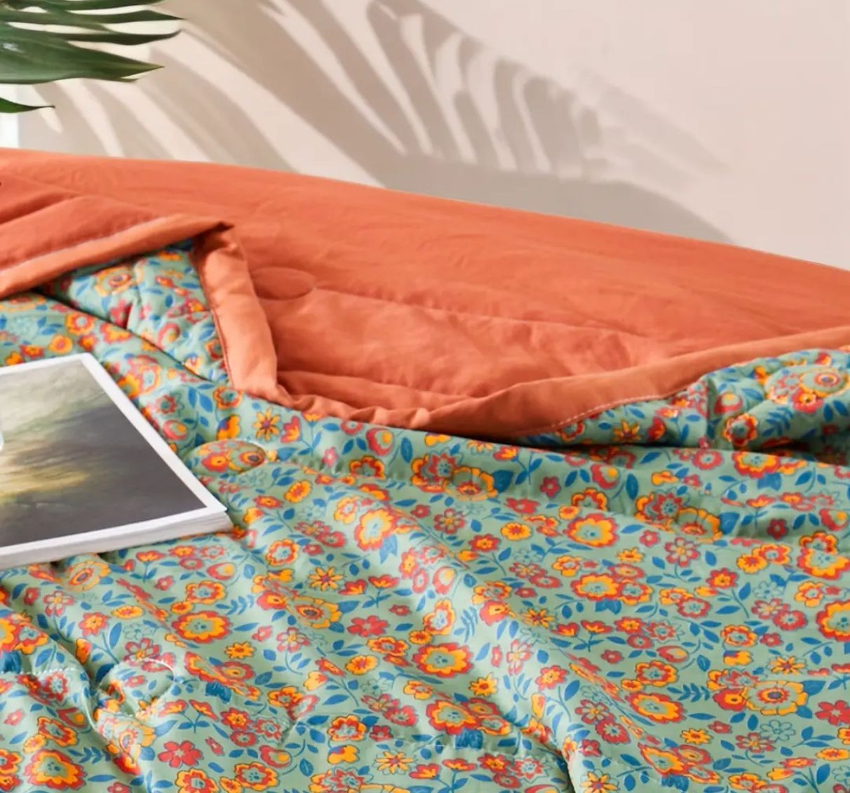 • 商品名称:水帛冰氧棉繁花夏凉被单人双人时尚印花夏凉被春夏必备亲肤柔软 橘青色 150x200cm