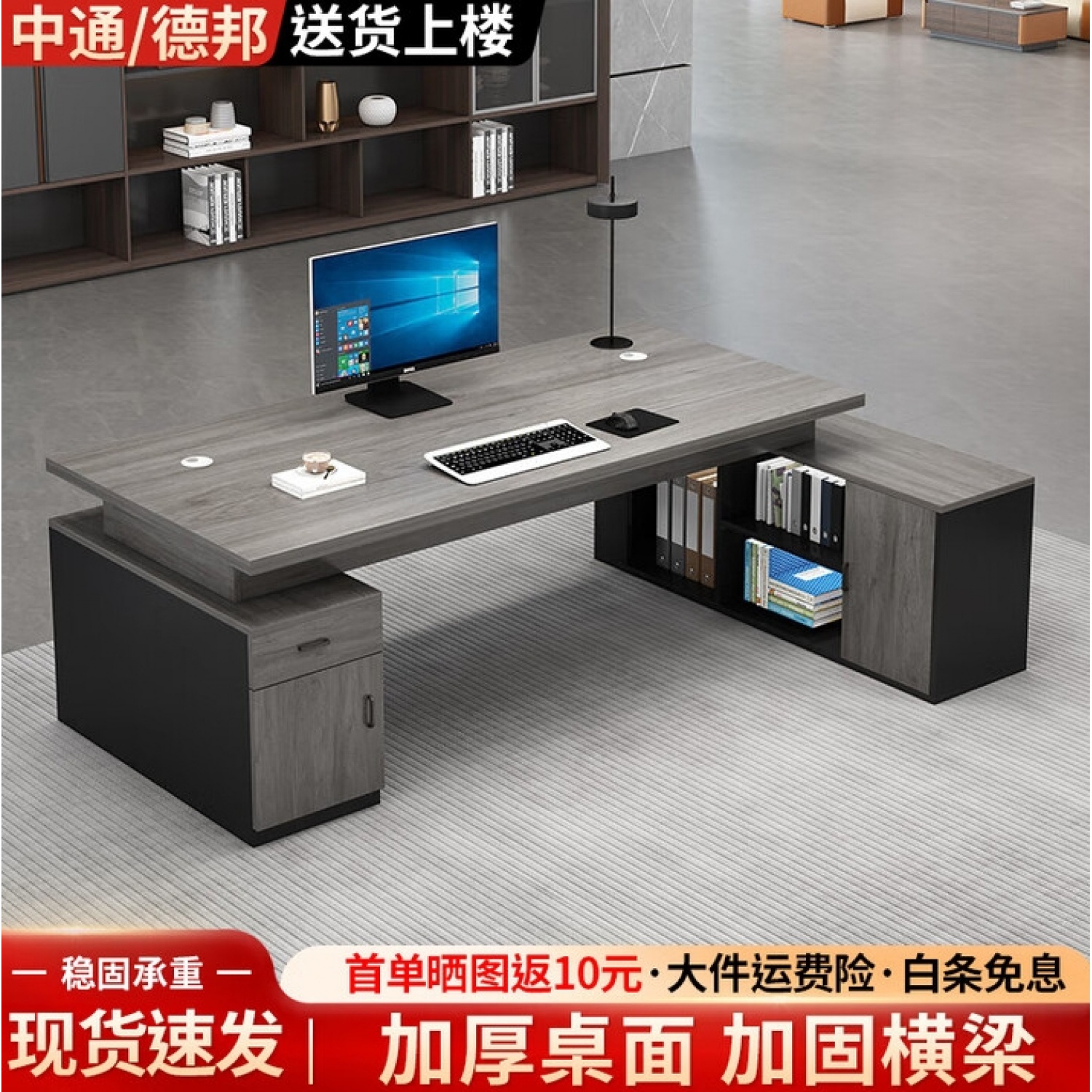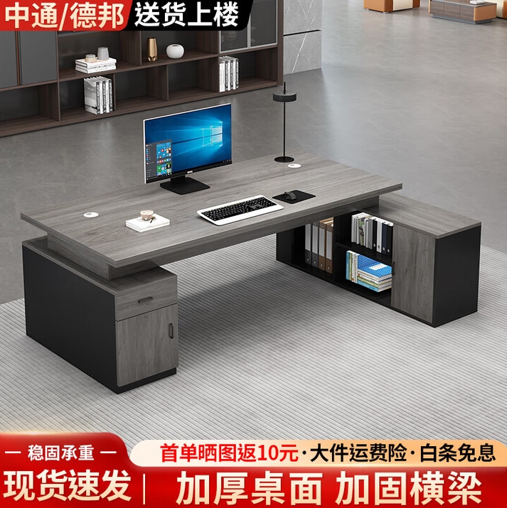 • 商品名称:环宜办公桌老板桌椅组合现代简约办公室总裁桌总经理大班台主管桌子 【灰橡木】长160+桌宽60+双侧柜